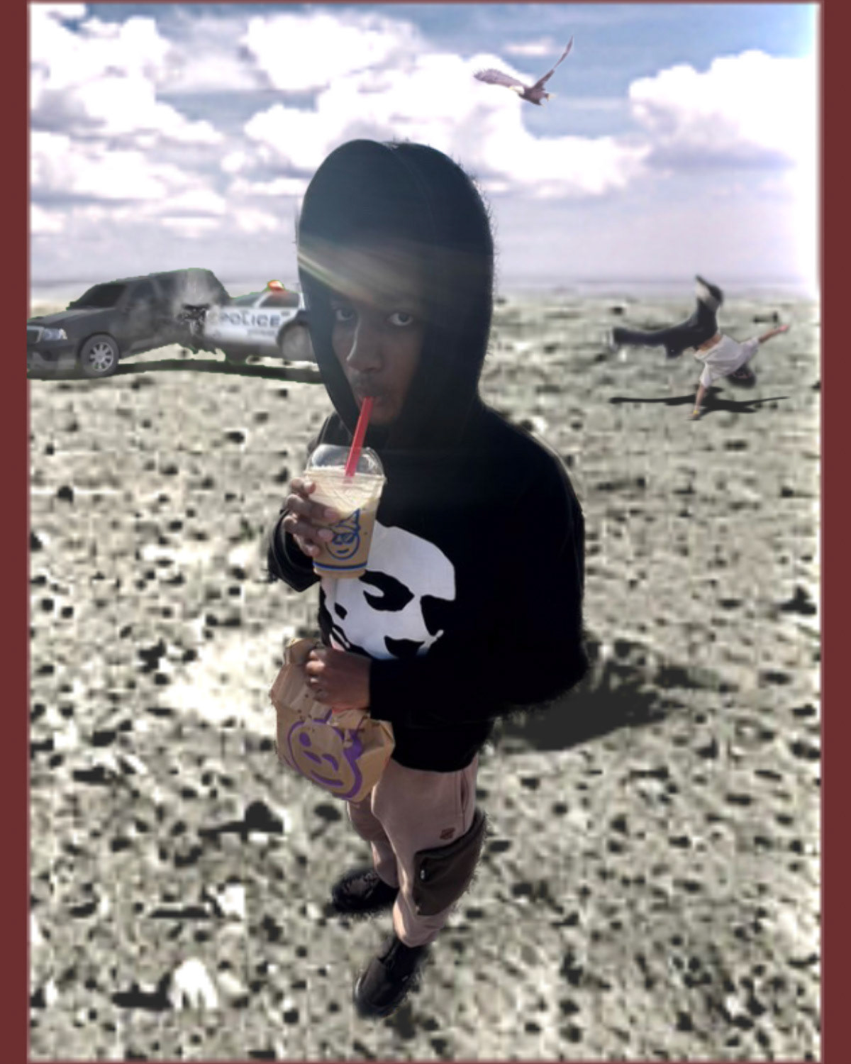 Graphic composition projects that combine photos and digital effects for expressive purposes